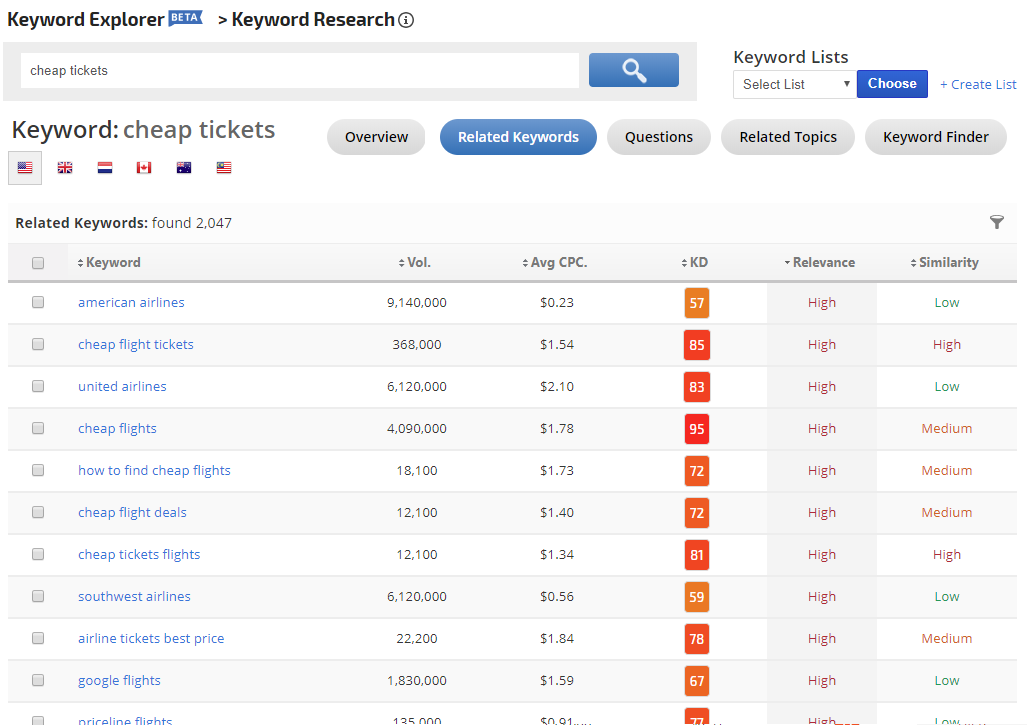 Example of KD in the Keyword Explorer > Keyword Research Tool