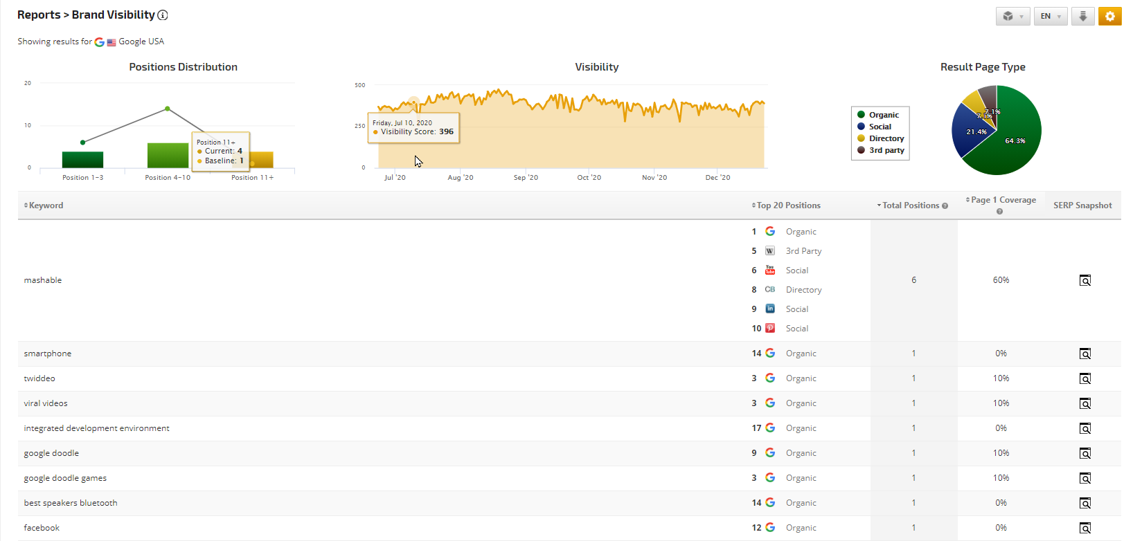 Note: the SERP Snapshot option is available in your Rank Ranger user interface and White Label Client Dashboards, but does not display in automated PDF reports.