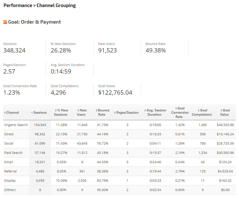 Goal Conversions by Channel Grouping