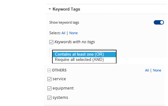 KeywordsSelect all or specific Keywords by adding or removing the check mark next to the Keyword. |