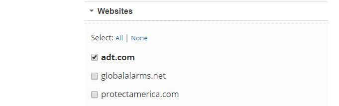 WebsitesSelect the Website(s) to be displayed in the report: use the All or None link for quick selection, or check the boxes beside the individual sites. |
