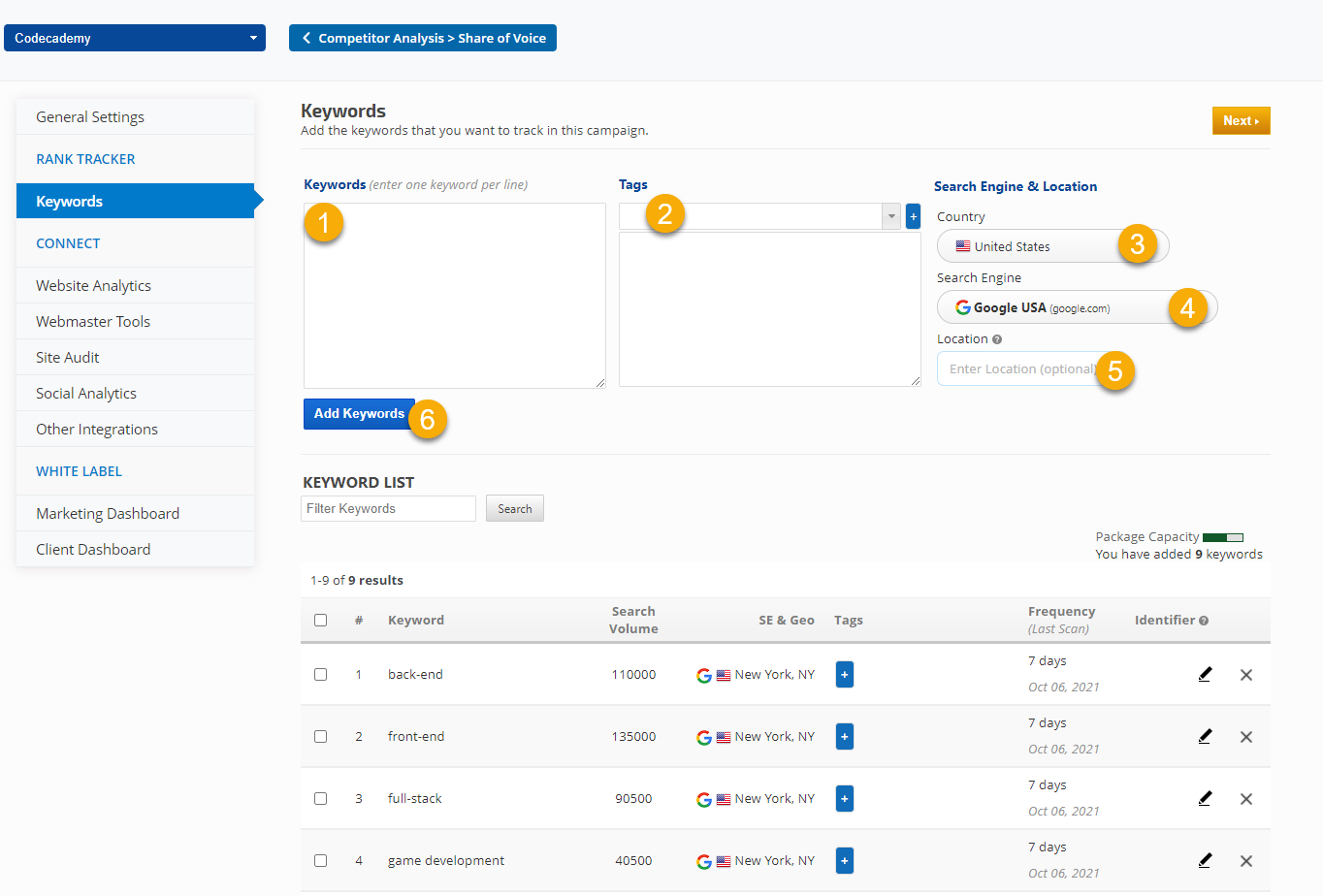 Select a campaign keyword(Search Engine) to base the competitor report on and click the Search icon