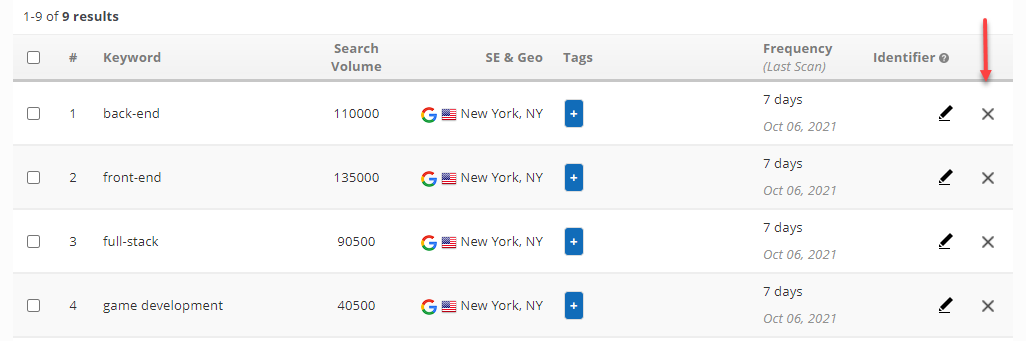 snapshot for each competitor's ranking of the selected keyword is provided and includes: