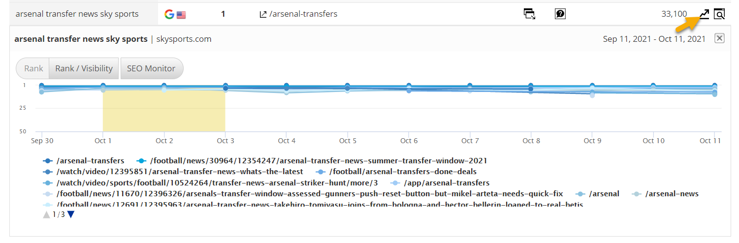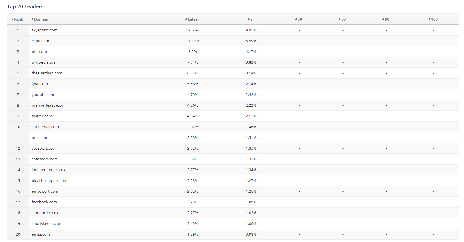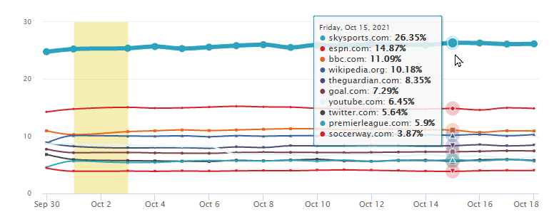 In the above graph, you may notice that on several dates there isn't a line representing the number 3 or 4 position, this is because one of the sites that are in the number 1 or number 2 rank position was also ranking for position 3 or 4.