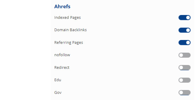 | Ahrefs Pages | Displays the number of Ahrefs Indexed pages. |