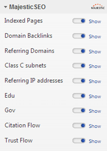 Majestic SEO Trust Flow | Displays Majestic SEO Trust Flow metric, which is weighted by the number of clicks from a seed set of trusted sites to a given URL, or Domain. |