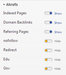 | Ahrefs Redirect | Displays the number of Redirect type backlinks. |