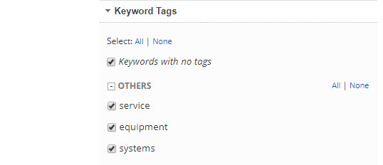 • Select the Tag(s) to be included in the report: use the All or None link for quick selection or individually check the boxes beside the keyword tags.