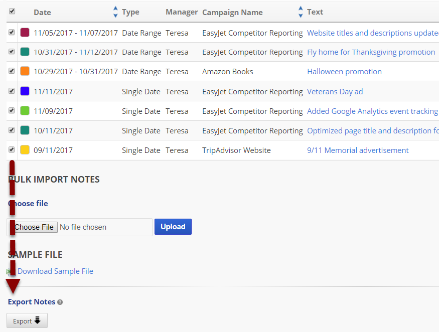 Fixed notes can be used to display a message for a single campaign, specific multiple campaigns or account-wide continuously and the content can be changed as needed (in the Campaigns > Toolkit > Notes screen).