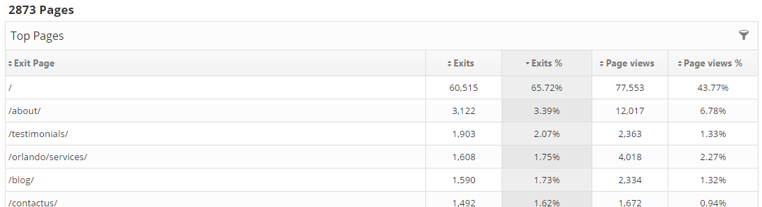 Page Views % is the percent of Exit Page views compared to the site's Total Page Views