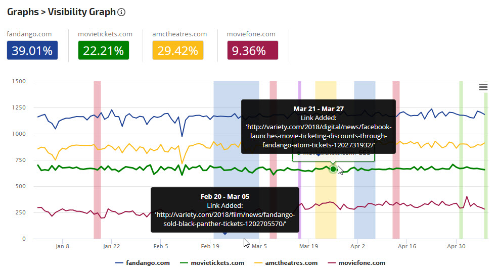 In this example, multiple notes display as color highlights in the Visibility Graph and can be read by hovering over any highlighted area.