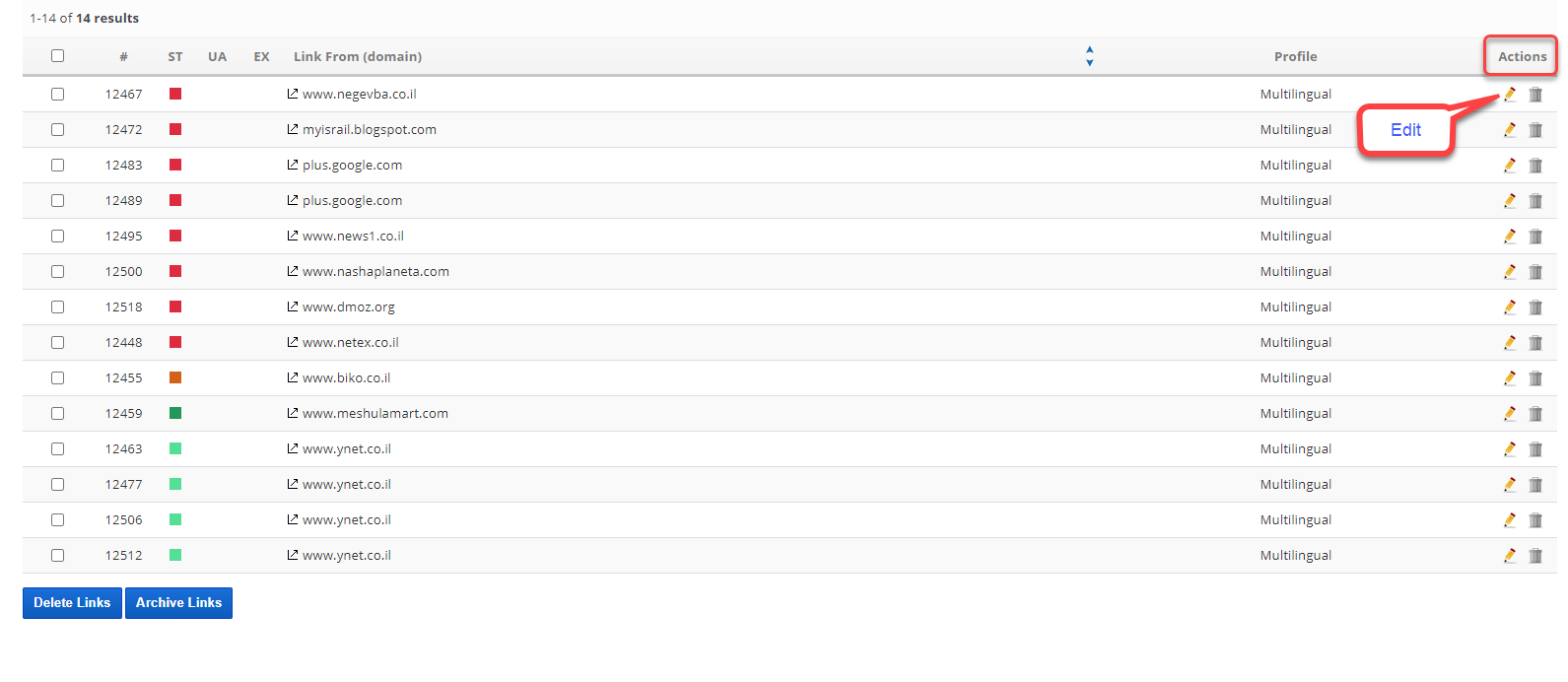 After a link has been created, you'll see additional functions in the upper right of the Link Details screen: