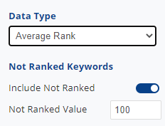 Utilizes Custom Views for multiple campaigns, US map zoomed in and locked to set position, Average Rank data type, Point marker type, marker legend, default width and 500 height, and custom map and background colors.