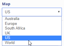 Utilizes Custom Views for multiple campaigns, US map, Visibility data type, default width and 600 height, and default map and background colors.