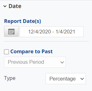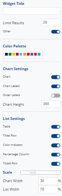 In the Report Options the settings can be changed to hide or show the chart, table, row titles of the table, percentage column, color indicators and the Totals Row.