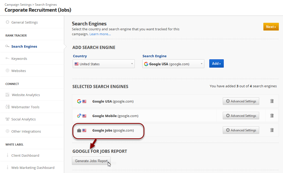 Google Jobs tracking is a premium service available as an add-on to Enterprise Rank Tracking packages or via the Google Jobs Rank API.