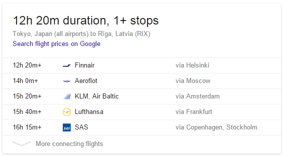 Current Flight SERP Answer Box