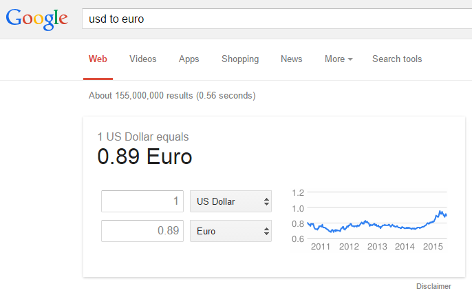 SERP Feature Answer Box currency