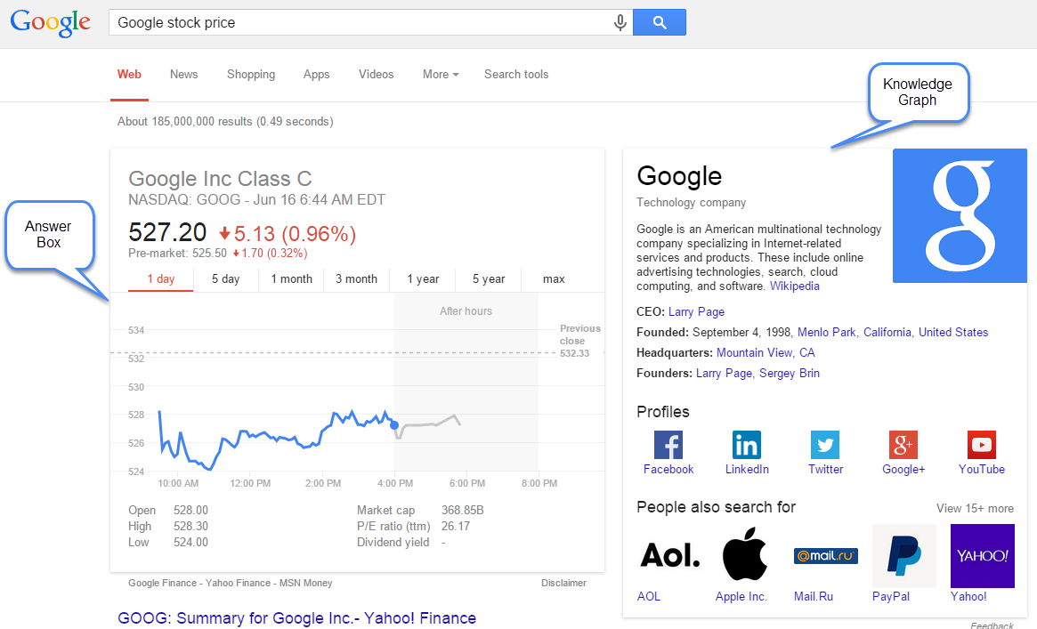 API results for answer box graph