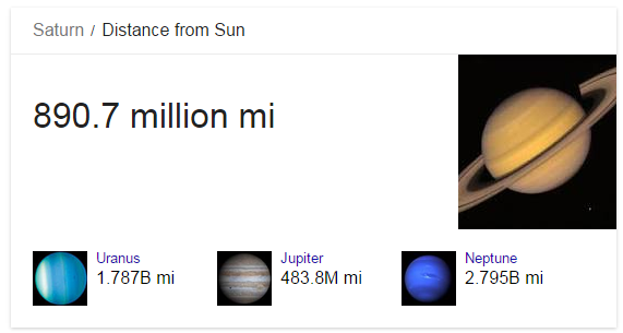 Knowledge Graph Title and Subtitle are provided in the API results. Based on the above example, the Title: Saturn and Subtitle: Planet is displayed and the description in the API results.
