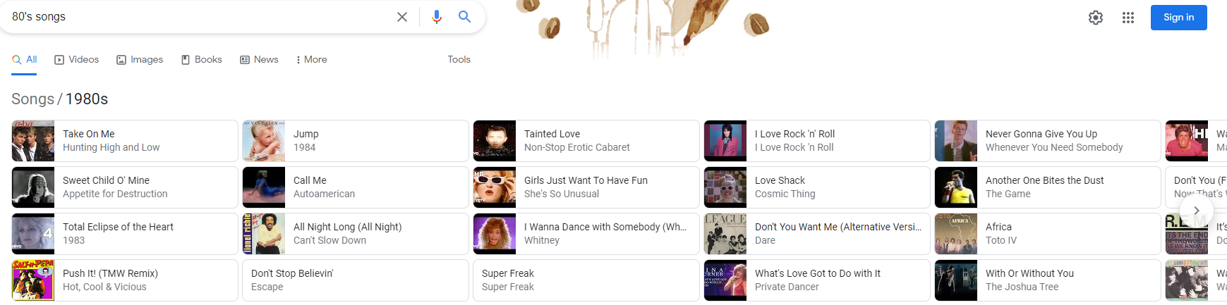 SERP features Carousel song list