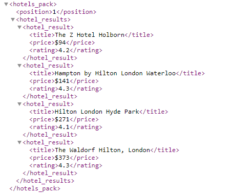 5. Test your API method by clicking the launch URL icon and view your results. Once your results are as you want them, copy that URL into your own application and modify as needed for each request.
