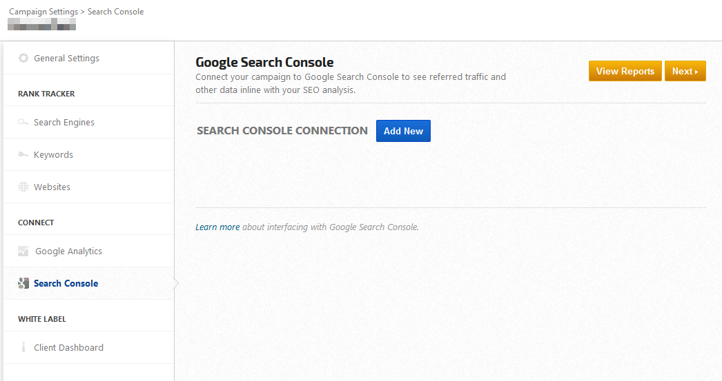 After successful connection to a Rank Ranger campaign, you can use the