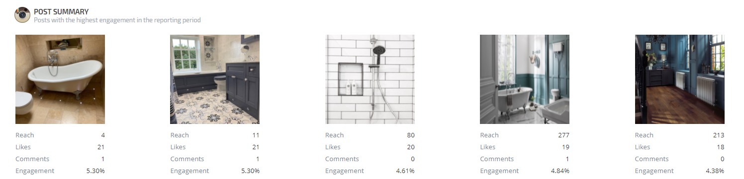 The Instagram Analytics report provides the data needed to analyze social KPIs, monitor trends, and measure engagement, plus includes the flexibility to add specific report sections to white label dashboards and PDF reports for sharing with clients and coworkers. Sections include: