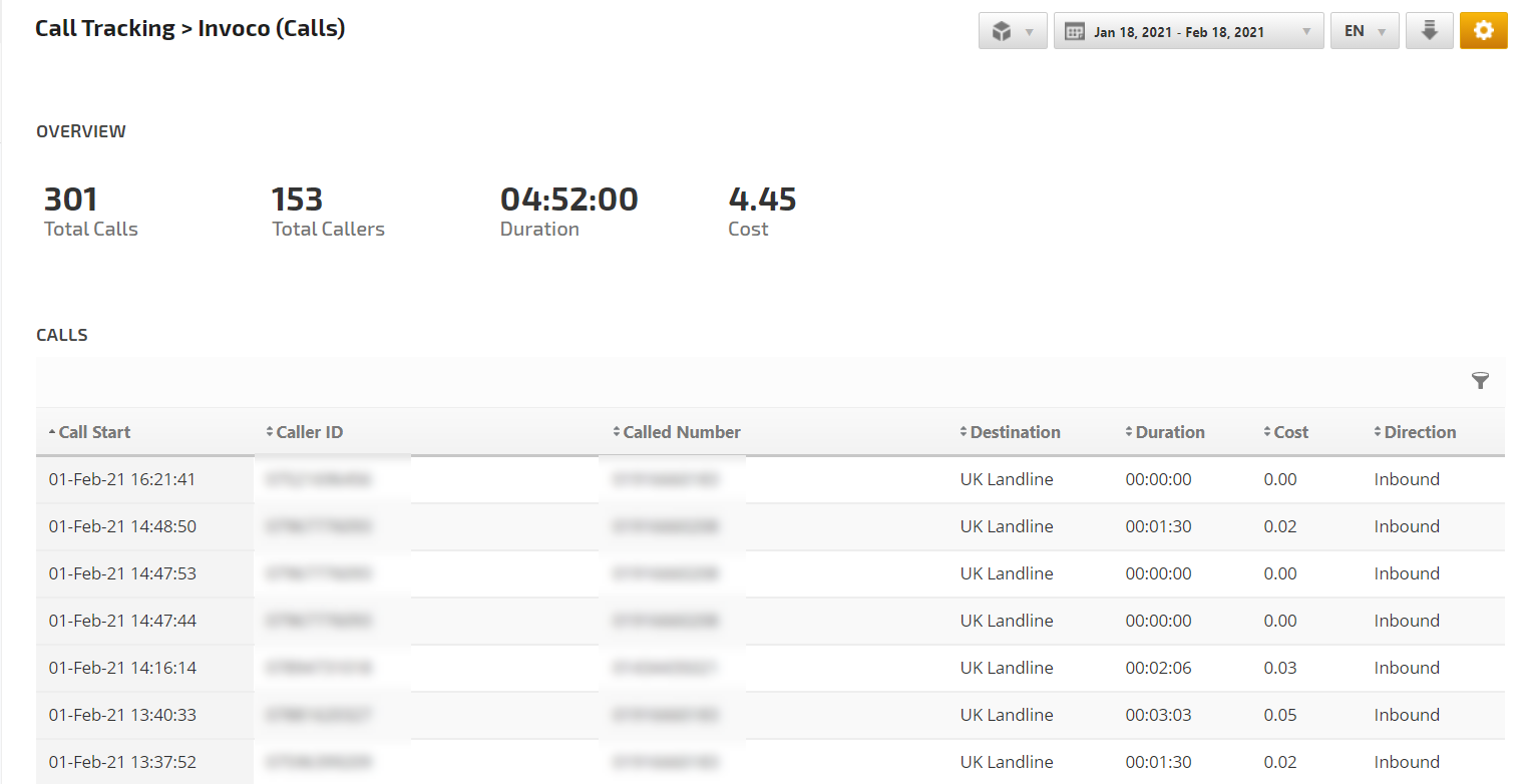 Invoco is one of the UK's call tracking solutions. You can connect your campaign to an Invoco Telecom account if you'd like to include their call tracking analytics data in your Rank Ranger reports for display in white label dashboards and PDF reports.