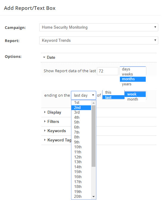 Keyword Trend data is collected when keywords are added to a campaign, after that rechecks can be initiated in the campaign > keywords screen.