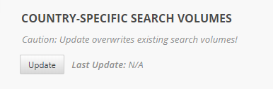 The Local Volume Settings option is available at the bottom of the Campaign Settings > Keywords screen for API packages. To utilize this option, scroll to the bottom of the Keywords screen, select a country and click the Update button.