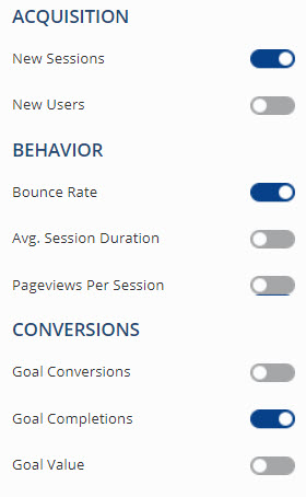 Display Analytic Metrics by moving the slider to the right for each selection.