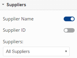 In this view, we have selected one specific Supplier, but you can also select All suppliers and sort the report by Supplier Name. The report can be customized by selecting any metric from Report Options.