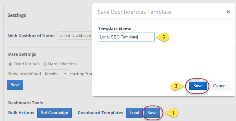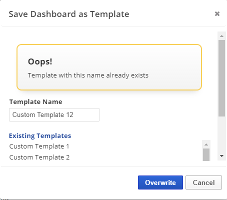 Click the Dashboard Templates Save button, enter a Template Name and click Save.