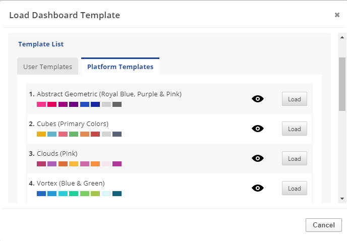 These Platform Templates include background images and font styles that can be applied to a dashboard