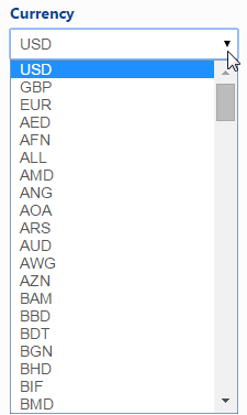 • Select from the list of world currencies the one that you've set in your Google Analytics or AdWords account for this domain.  If the currency you have set up in Google doesn't pass correctly through Google Analytics to Rank Ranger, you can change the currency symbol with this setting.