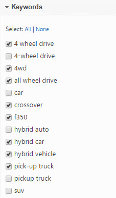 Select up to 8 Keywords by adding or removing the check mark next to the Keyword.