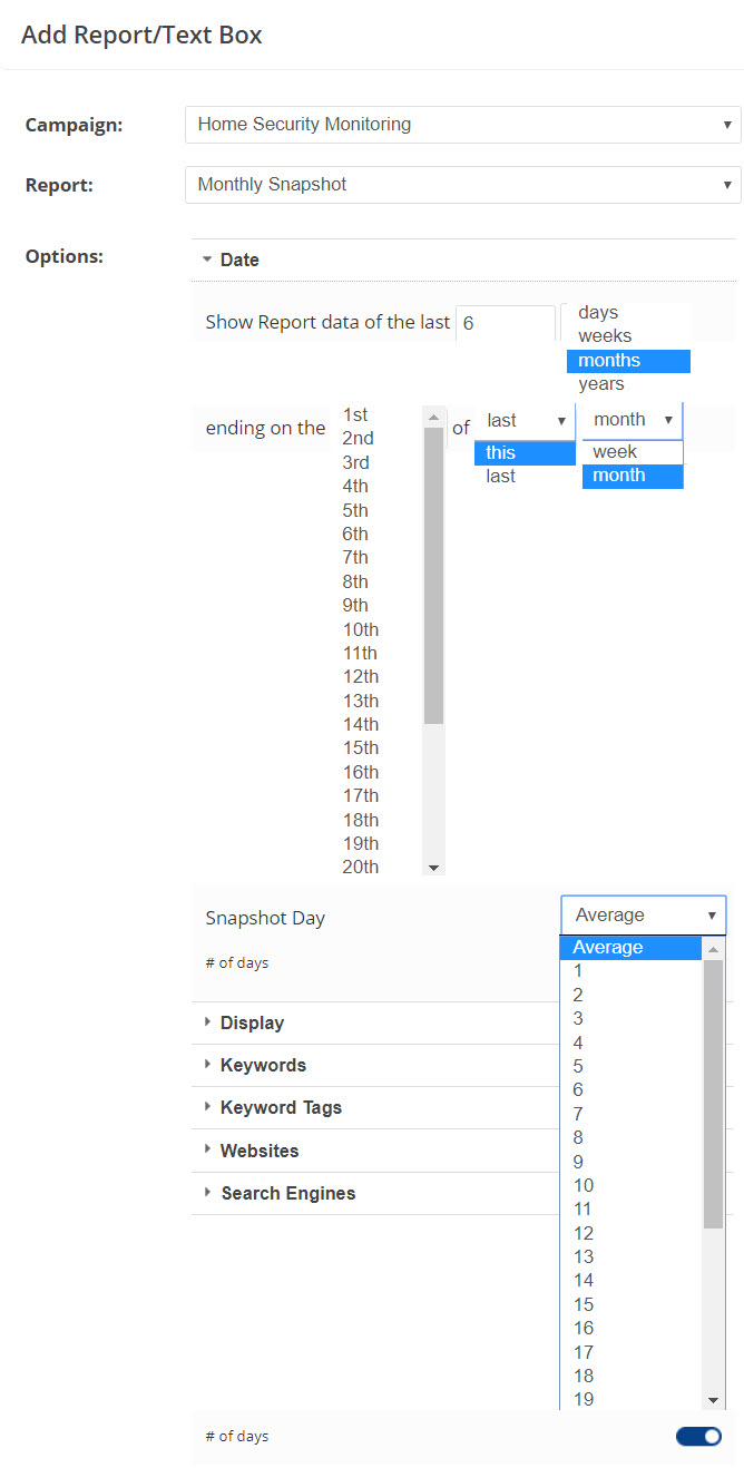 • Snapshot Day: select the Average rank or 1 specific day of the month that you want the report based on.