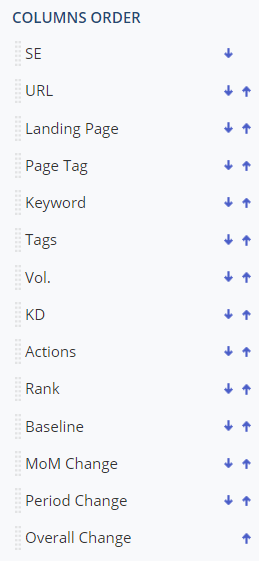 • MoM Change, then the rank change (increase/decrease) for a keyword for the last two months of the selected date range will be displayed in the table.