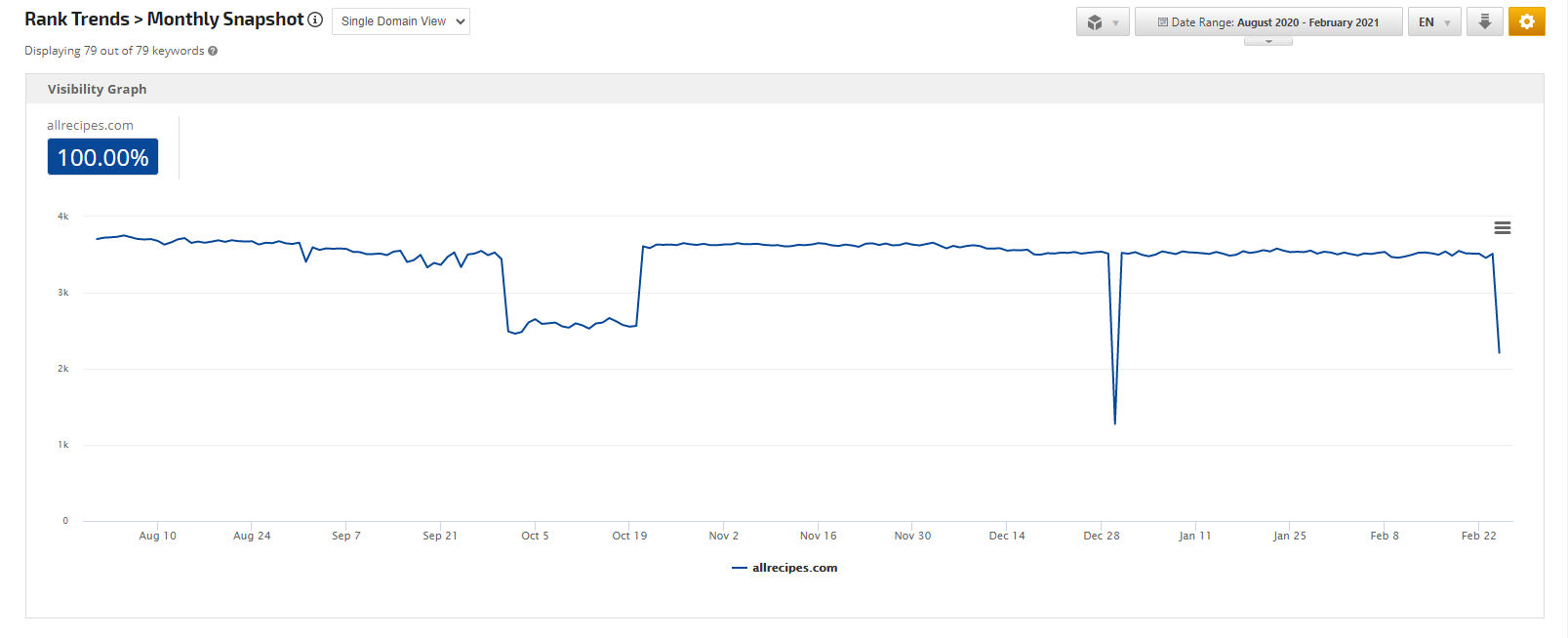 Switch On the Visibility Widget to show the Visibility Share % and the graph with daily Visibility Score for a primary domain.
