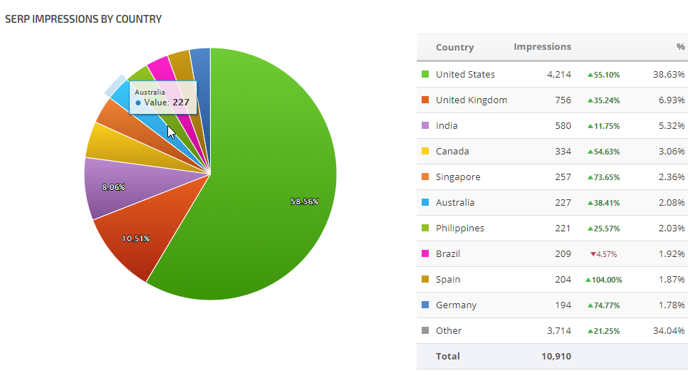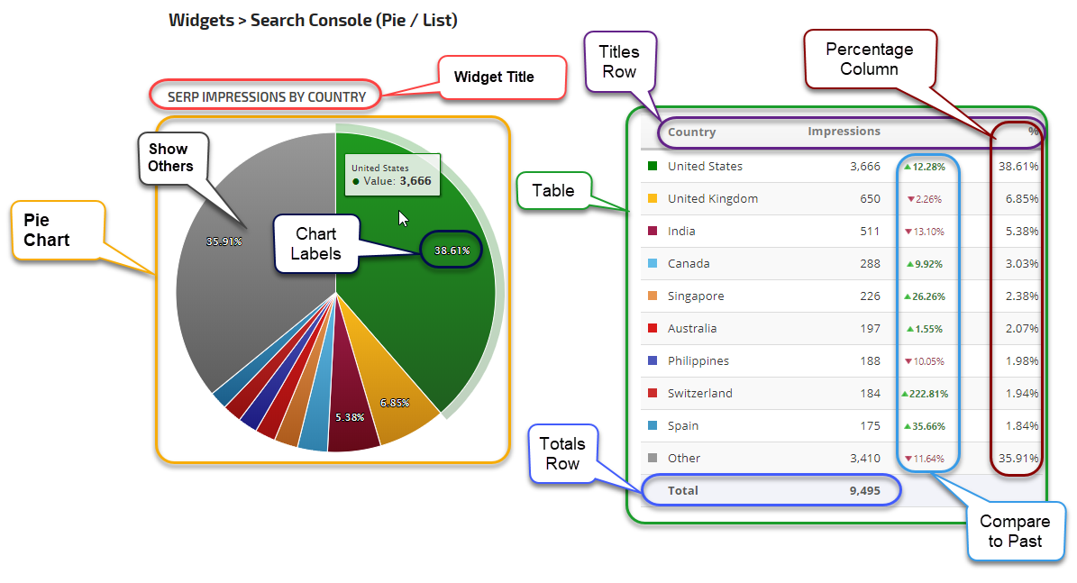 • Show Others: show or hide (i.e., if you choose to limit results to 10 and Search Console has 35 results, then the other 25 results are totaled into one area of the pie chart)