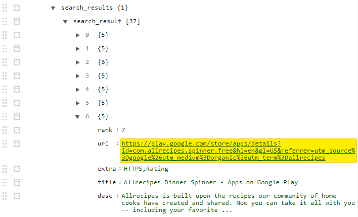 Search Query API Parsed JSON Results