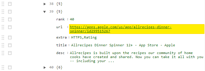 • organic search results with rank, URL, title, description, and any page extras that display in the SERP (e.g., HTTP, sitelinks, etc.)