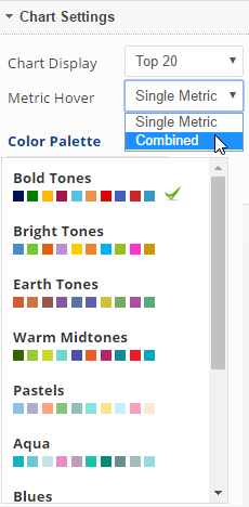 In this example, we have set the graph to display the top 10 competitors for 1 keyword on Google USA, selected the Earth Tones color palette, and enabled the Combined Metric Hover setting to display all competitors and their rank positions for the date we hovered over.