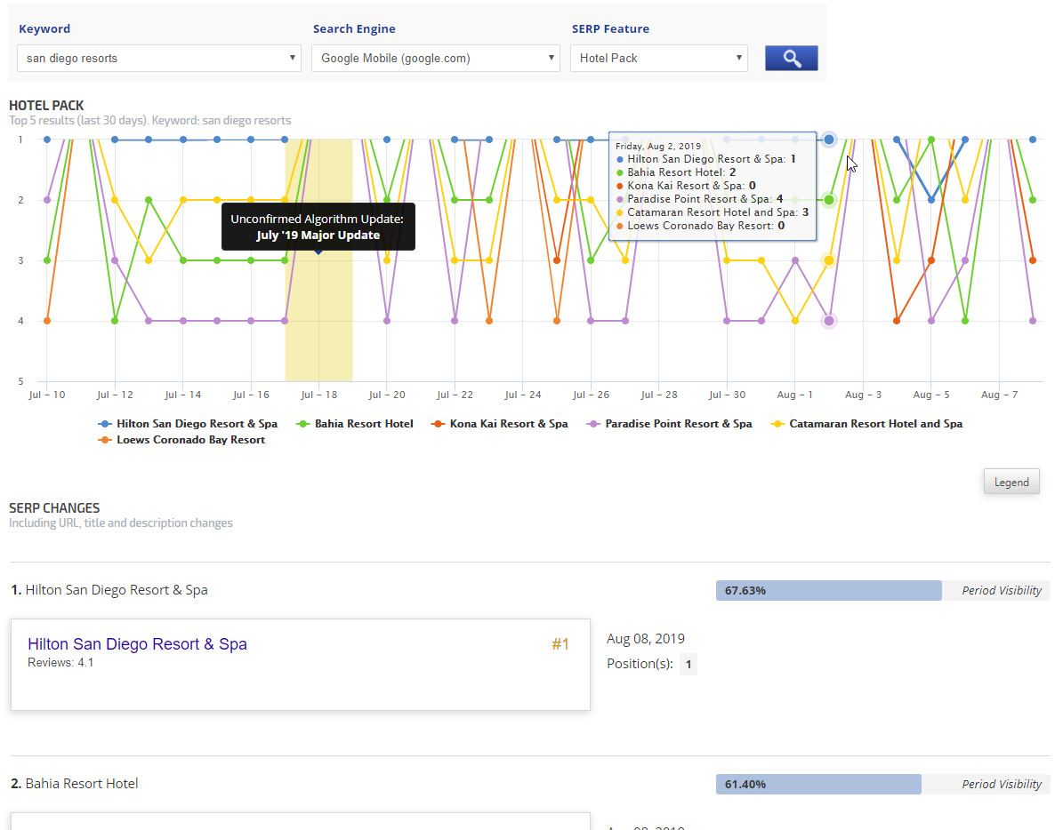 SERP Features Monitor can help you determine which sites are consistently in the Local Pack and how often Google is switching between the domains it ranks for those coveted spots.
