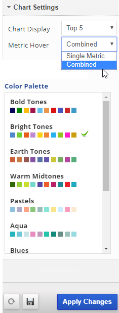 - The chart legend can be displayed or hidden by clicking the Legend button. When the legend is displayed, you can click on any URL to set it to hide or display on the chart. Show/Hide All buttons enable the user to select or unselect all URLs displayed in the chart and listed in the Legend option.