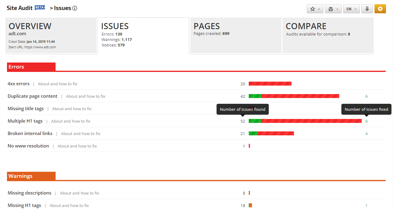 The issues displayed in this document represent a sampling of the potential issues that may be found in the results of a site audit.