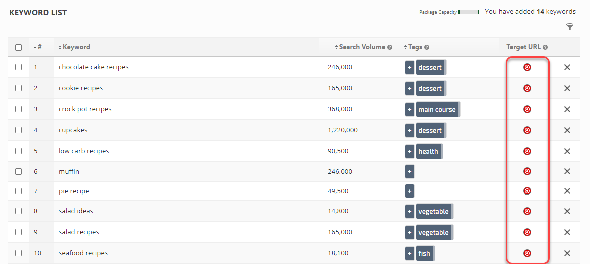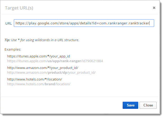 Target URLs are intended for rank tracking of service or location-based businesses that have multiple locations (e.g., real estate, hotels, restaurant chains, etc.), as well as YouTube videos and Apps in Apple iTunes or Google Play Store.