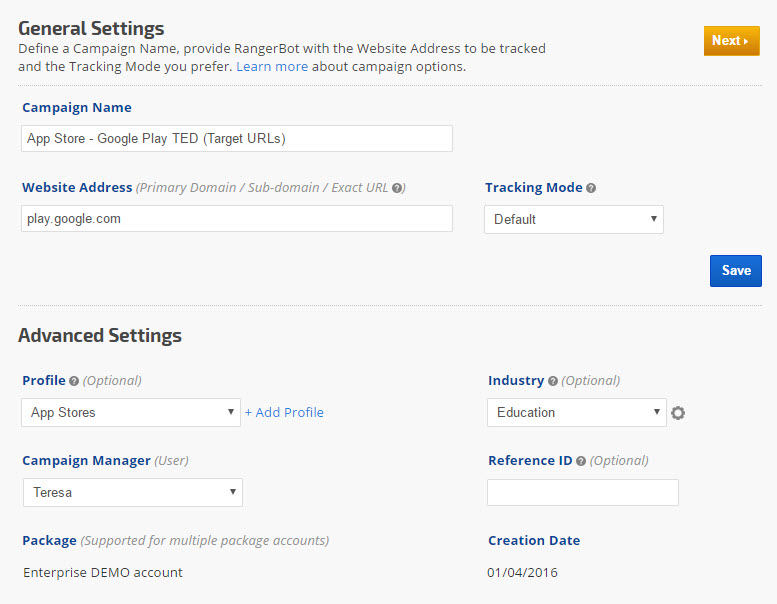 This video is intended to be a quick start guide, please refer to the description of the settings, and step-by-step instructions on this page for complete details regarding rank tracking campaign optimization.
