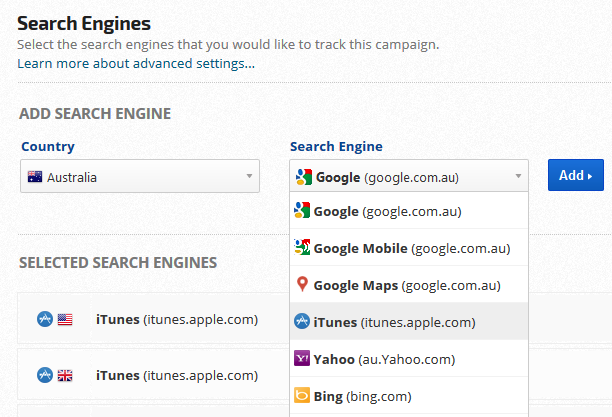 Or we could track each country separately by entering the country-code iTunes links in the Target URL and tracking them on the country-based iTunes search engines.